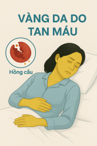 Đây là vàng da do tan máu, thường kèm theo thiếu máu, mệt mỏi, nước tiểu sẫm nhẹ.