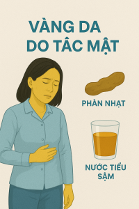 Một nguyên nhân khá phổ biến khác là tắc nghẽn đường dẫn mật. Khi mật không thể thoát ra ruột, bilirubin bị “ùn ngược” vào máu, gây vàng da đậm.