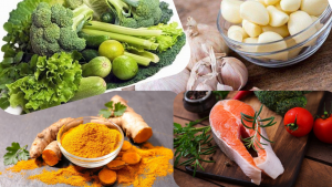 • Tăng cường rau xanh, trái cây tươi, nghệ, tỏi, cá béo, yến mạch.